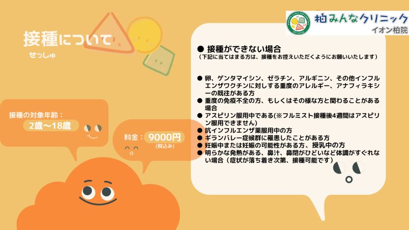 「痛くない」インフルワクチン(経鼻インフルエンザ生ワクチン:フルミスト®)を用意しています!